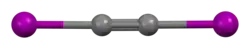 Diiodoacetylene is the organoiodine compound with the formula C2I2. It is a white, volatile solid that dissolves in organic solvents. It is prepared by iodination of trimethylsilylacetylene.[1] Although samples explode above 80 °C, diiodoacetylene is the most readily handled of the dihaloacetylenes. Dichloroacetylene, for example, is more volatile and more explosive.[2] As confirmed by X-ray crystallography, diiodoacetylene is linear,[3] with the structure I−C≡C−I. It is however a shock, heat and friction sensitive compound. Like other haloalkynes, diiodoacetylene is a strong halogen bond donor.[4]