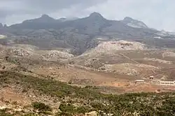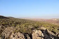 The Diksam Plateau is an extensive area located near the geographic center of Socotra between the Hajhir Mountains and the southern coastal plain. Situated about 700 m above sea level, the plateau is home to herdsmen, named Bedouin,[2] who move from one site to another with their herds. They live in a high number of tiny villages scattered across the plateau, reflecting extensive pastoralism, on which their inhabitants are dependent.[3]