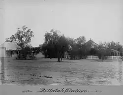 By 1876 the property occupied an area of 810 square miles (2,098 km2) and was stocked with 4,200 cattle and 45 horses.[1] The property sold at auction in 1877 for £32,000 including stock, but the buyers name was not declared.[7] Frederick Walters was managing the property in 1878,[8] it was owned by the Dillalah Company in 1883 with Walters still managing. /the property occupied an area of 1,000 square miles (2,590 km2).[9] The Morgan brothers owned the property in 1883[10] and soon introduced sheep to the run.[11]