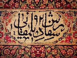 The Dilmaghani family, the oldest existing manufacturers of hand knotted carpets and oriental rugs, can be traced back to the 1850s[1] Qajar dynasty, Persia. In an industry which largely produces untitled items often identifiable only by experts,[2] the history and lineage of any name relating to specific types of rugs for so many decades is unusual. Through the 1960s, the Dilmaghani family was still designing, manufacturing and importing Persian carpets from Iran to the United States.[3] Dilmaghani is seen as an important connection of 19th and 20th century Persian rug and carpet production[4] in and around the cities of Tabriz and Kermān. Dilmaghani remained as of 1980 among the best known names[4][5] of branded hand knotted carpets.