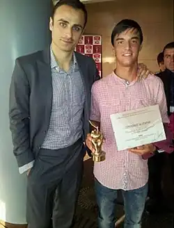 Dimitar Kuzmanov made his professional debut at Bulgaria F2 ITF Futures Tournament – at age of 15 years and 9 months. Late in season, he played 2 more ITF Futures tournaments and won his first ATP ranking points. He continued to play tournaments at Tennis Europe and ITF Junior level and this year is definitely one of his most successful years as a junior player. Kuzmanov rose to No. 1 for Boys U16 in Tennis Europe Ranking (26 June 2009)[8] and was honored as "Player of the Tennis Europe Junior for Boys U16 – 2009" [9] becoming the first Bulgarian in the history who had won this prestigious award for this age group. He finished the year as No. 1 in Tennis Europe Ranking.[6][8][10]