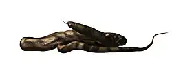 Dinilysia (meaning "terrible ilysia") is an extinct genus of snake from the Late Cretaceous (Coniacian) of South America. Dinilysia was a relatively large ambush predator, measuring approximately 2 m (6.6 ft) long. The skull morphology of Dinilysia is similar to boids, suggesting that it was able to consume large prey. Living in a desert-like environment, Dinilysia is likely a terrestrial or a semi-fossorial animal.[1]