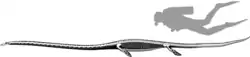 In 2004, Li and colleagues suggested that Dinocephalosaurus may also have used its neck to capture its prey via suction feeding. After flexing its neck to the side (which would have been facilitated by the slenderness of the cervical ribs), the act of straightening the neck would have caused the cervical ribs to splay outwards due to the action of the neck muscles attached to the ribs. As the head lunged forward, the volume of the esophagus would have increased, creating suction. Once the prey was caught, the fang-like teeth would have secured the prey in the mouth.[2] However, in a response, Brigitte Demes and David Krause suggested that suction feeding would have involved the animal swallowing a large amount of saltwater as well as rapidly expanding its esophagus. Without evidence for adaptations to either behaviour (salt glands for the former, a large hyoid bone or specialised ribs for the latter), they considered the suggestion of Li and colleagues to be unlikely.[33] Nevertheless, like other aquatic amniotes, Dinocephalosaurus would have swallowed and digested its prey head-first, as evidenced by the preservation of a perleidid fish in the abdominal region of LPV 30280 from Luoping.[8][34]