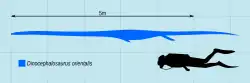 Dinocephalosaurus was a very large non-crocopodan archosauromorph, attaining a maximum body length of up to 6 metres (20 ft),[11] compared to a maximum of 5–6 m (16–20 ft) for Tanystropheus.[12] The known specimens were probably mature, given that they have fused skull bones and lack the multi-cusped teeth seen in juvenile Tanystropheus.[3]