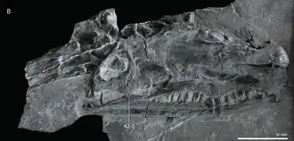 - ^ a b c Fraser, N.C.; Rieppel, O.; L., C. (2013). "A long-snouted protorosaur from the Middle Triassic of southern China". Journal of Vertebrate Paleontology. 33 (5): 1120–1126. doi:10.1080/02724634.2013.764310. S2CID 83521468.