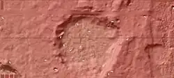 Dinorwic is a Martian impact crater, approximately 51 kilometers in diameter. It is named after the town in Ontario, Canada. Its name was approved by the International Astronomical Union in 1991.[1][2] According to a surface age map of Mars based on US Geological Survey data, the area around Dinorwic is from the Noachian epoch, which places the area's age at 3.8 to 3.5 billion years ago.[3] At the crater's rim, it is about 7,600 meters above zero altitude, and it is about 5,950 meters above zero altitude at its floor, giving it a depth of 1.6 kilometers.[2]