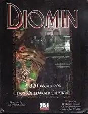 Diomin was a fantasy setting which was originally designed for GURPS, but after starting RPG publisher OtherWorld Creations (OWC) during the d20 boom, R. Hyrum Savage and his friends Chad Cunningham and Chris Miller were convinced by the d20 licensing to convert Diomin to d20 and the company released it in 2000. OtherWorld supported Diomin with publications through 2003, but production was halted soon after with the crash of the d20 market. Savage brought back OtherWorld Creations in 2006 using another licensing opportunity similar to the OGL, so Diomin was brought back for the Mongoose Publishing version of the RuneQuest system, with new books that were mostly released as PDFs.[1]