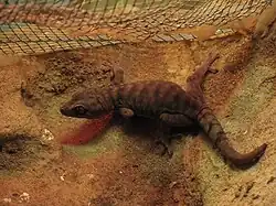 The Diplodactylidae are a family in the suborder Gekkota (geckos), with over 150 species in 25 genera.[2] These geckos occur in Australia, New Zealand, and New Caledonia.[3][4] Diplodactylids are the most ecologically diverse and widespread family of geckos in both Australia and New Caledonia, and are the only family of geckos found in New Zealand.[5][6] Three diplodactylid genera (Oedura, Rhacodactylus, and Hoplodactylus) have recently been split into multiple new genera.[7][8][9]
