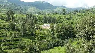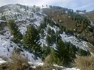 The topography of Upper Dir is dominated by high mountains. The most important mountain range is the Hindu Kush.[12] It runs from north east to south west along the northern borders with Chitral District. In winter whole area remains snow-covered. The mountains in the western part of the district are covered with forests, while the eastern mountain range, Dir Kohistan is barren. Panjkora River is the main river of the district, which originates from Dir Kohistan. Upper Dir headquarters is connected to all tehsil headquarters.[5]