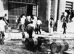The Seguridad Nacional was abolished following the overthrow of Pérez Jiménez on 23 January 1958.[1][4] Outraged citizens raided the DSN headquarters after Pérez Jiménez's removal, with some mobs killing DSN members throughout Venezuela and releasing prisoners from their custody.[3]