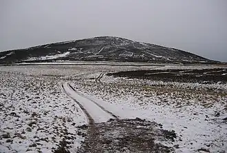 At the summit of Dirrington Great Law are three large circular cairns, 23.5 metres (77 ft), 21 metres (69 ft), and 8.5 metres (28 ft) in diameter.[2] The cairns are composed of stones excavated from the hilltop, rather than from loose stone gathered from the ground.[3]