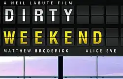 Dirty Weekend is a 2015 comedy drama film written and directed by Neil LaBute[1] and starring Matthew Broderick, Alice Eve, and Phil Burke. Produced by Duncan Montgomery, Tiller Russell, and Joey Stewart, with Executive Producers Cody Davis, Jack Selby & James Jackson Leach. Shot in Albuquerque, New Mexico.