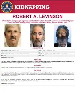 - ^ "FBI — Eight Year Anniversary of the Disappearance of Robert A. Levinson". FBI. Archived from the original on March 31, 2020. Retrieved July 28, 2016.
