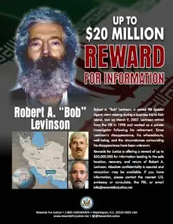 - Bob Levinson wanted poster FBI web site, retrieved November 2019.