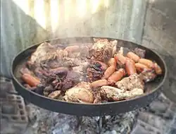 A discada (also known as a cowboy wok or a plow disc cooker, Spanish: disco) is a large disc cookware found in Mexican and Southwestern US cooking[1][2] It is also the name for a mixed meat dish made with this cooking utensil.[3]