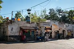 Africa, set in the fictional east African port village of Harambe, resembles the local villages found in Kenya, Tanzania, and Uganda. Some snippets from Africa that were duplicated by the Disney Imagineers included a fortress that was found in Zanzibar, and a water-stained, crumbling old building that was found in Kenya. Harambe includes a "hotel”, restaurants, an outdoor bar with live entertainment, and different marketplaces.