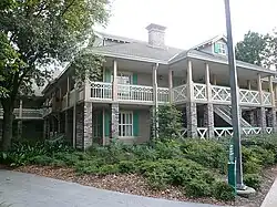 Disney's Port Orleans Resort Riverside was designed to reflect the Antebellum South along the Mississippi River.[5] It opened on February 2, 1992 as Disney's Dixie Landings Resort, initially with rooms located in its Alligator Bayou section. The remaining Magnolia Bend section was opened shortly thereafter.[4] Alligator Bayou has 1,024 guest rooms over 16 buildings, styled as rustic, weathered lodges, with 64 rooms per lodge. Magnolia Bend has 1,024 guest rooms over four buildings styled as southern plantation grand manor homes, with 256 rooms per mansion.[2]