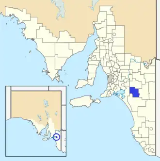 - ^ a b Kerin, R.G. (13 February 1997). "LOCAL GOVERNMENT ACT 1934 SECTIONS 7 AND 14: AMALGAMATION OF THE DISTRICT COUNCIL OF PEAKE, THE DISTRICT COUNCIL OF MENINGIE AND THE DISTRICT COUNCIL OF PEAKE" (PDF). The Government Gazette of South Australia. Government of South Australia. pp. 900–903. Retrieved 6 April 2019.