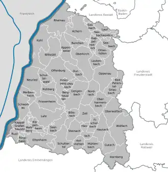The district was created in 1973 by merging the districts of Kehl, Lahr, Offenburg, Wolfach and the southern part of the district of Bühl.