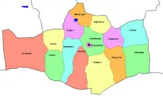 Each district is again subdivided into bags (brigades; sometimes spelled baghs[2]). Most bags are of an entirely virtual nature. Their purpose is to sort the families of nomads in the district into groups, without a permanent human settlement.