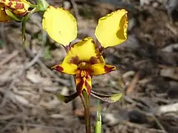 | Diuris nigromontana growing on Black Mountain in the A.C.T. | |