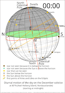 The diurnal motion is different in places of different latitudes and within each latitude according to the time of year, as can be seen in the following images.