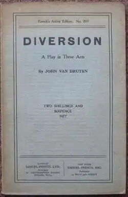 Diversion is a 1927 play by the British writer John Van Druten. It was first staged in the United States at the Lyceum Theatre in Rochester before beginning a 68 run performance at the 49th Street Theatre in 1928.[1] In London it ran for a combined 101 performances at the Arts Theatre and Little Theatre between 26 September and 22 December 1928. The cast included Maurice Evans, C.V. France, Cathleen Nesbitt and Mignon O'Doherty.[2]
