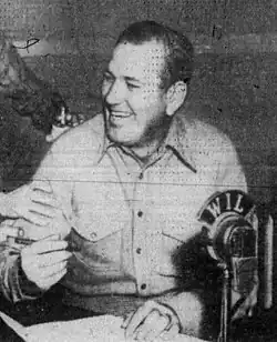 Dean made a one-game major-league comeback on September 28, 1947.[25] After retiring as a player, the still-popular Dean was hired as a broadcaster by the perennially cash-poor St. Louis Browns to drum up some badly needed publicity. After broadcasting several poor pitching performances in a row, he grew frustrated, saying on the air, "Doggone it, I can pitch better than nine out of the ten guys on this staff!" The wives of the Browns pitchers complained, and management, needing to sell tickets somehow, took him up on his offer and had him pitch the last game of the season versus the Chicago White Sox. At age 37, Dean pitched four innings, allowing no runs, and rapped a single in his only at-bat. Rounding first base, he pulled his hamstring. Returning to the broadcast booth at the end of the game, he said, "I said I can pitch better than nine of the ten guys on the staff, and I can. But I'm done. Talking's my game now, and I'm just glad that muscle I pulled wasn't in my throat."