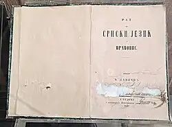 In 1847, he published a well-known polemical essay "The War for Serbian Language and Orthography",[1] where he opposed linguistic ideas of Miloš Svetić, the pseudonymous Jovan Hadžić, Karadžić's main opponent, and supported Karadžić's phonemic orthography. He gave the theoretical background to Karadžić's concepts in his numerous linguistic works.[3]