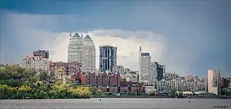 In the 15th century the area became part of the Kiev Voivodeship (1471–1565) of the Polish–Lithuanian Commonwealth.[36] Archeological finds in today's Dnipro's urban district Samarskyi District suggest that the important river crossing was a trading settlement from at least 1524.[37] In 1635, the Polish–Lithuanian Commonwealth built the Kodak Fortress above the Dnieper Rapids at Kodaky on the south-eastern outskirts of modern Dnipro near the current Kaidatsky Bridge,[19] only to have it destroyed within months by the Cossacks of Ivan Sulyma.[38] Rebuilt in 1645,[19] it was captured by Zaporozhian Sich in 1648.[37]