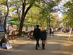 In the mid-1730s, the fortress and Russians returned, living in an uneasy cohabitation with local cossacks.[37] From mid-century they co-existed with the Zaporozhian sloboda (or "free settlement") of Polovytsia located on the site of today's Central Terminal and the Ozyorka farmers market.[40][15]