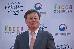In 2017, he was appointed as the Minister of Culture, Sports and Tourism.[5] In 2020 he was elected as the chair of National Assembly's Culture, Sports and Tourism Committee responsible for scrutinising Ministry of Culture, Sports and Tourism Cultural Heritage Administration and related agencies.[6]