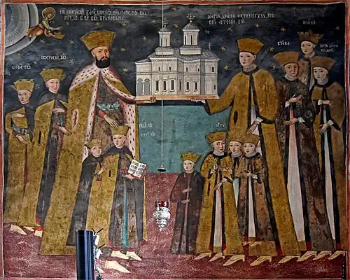 She married Constantin Brancoveanu in 1674. She supported and actively participated in the culture policy of her spouse. She had books printed in Romanian, Greek, Slavic, Arabic, Turkic and Georgian, and founded libraries with Western books. She is especially known for her support to the St Sava convent. After the deposition of her spouse in 1714, she was brought as a prisoner to Constantinople by the Ottoman along with the rest of her family. Her spouse and sons were murdered.[3] She was eventually released, and exiled to Kutai, near the eastern shore of the Black Sea. She was allowed to return to Bucharest in 1716. In 1720, she managed to have the remains of her spouse and sons brought back to Wallachia and buried.