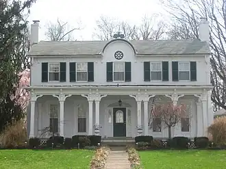 The Doan House was constructed in 1840 as the home of James Wilson,[2]: 149 who with his wife Eleanor was the superintendent of the Clinton County Infirmary from 1836 until 1840.[3]: 355 In 1869, the property was purchased by Azariah Doan, a prominent Wilmington lawyer and Civil War veteran. During the time that the Doans owned the house, they modernized it by adding numerous Italianate features to the original Federal-style components. For much of its history, the Doan House was a prominent travellers' landmark, as it was the city's easternmost house and the first or last portion of the city to be reached by those travelling into or out of the city's eastern side.[2]: 149