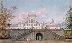 In the 17th century the village was bought by the family of Stanisław Leszczyński, who started the construction of a new palace; however, the works were stopped by The Deluge when the forces of Sweden captured the area and plundered it completely. In 1676 the depopulated village was bought by King Jan III Sobieski. By his order, Tylman van Gameren and Augustyn Wincenty Locci erected the new baroque-style palace[2][3] and St. Anne's Church. Initially the palace was named Villa Nova (New Village), to distinguish it from the nearby village of Stara Wieś (Old Village). However, soon the name was polonised to Wilanów, similar to the former name Milanów.
