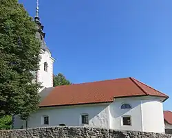 The local church is dedicated to Mary, Mother of God and belongs to the Parish of Dobrnič. It is a Gothic building with remnants of 14th-century frescos on the exterior walls. It was restyled in the Baroque in the second half of the 17th century.[3]