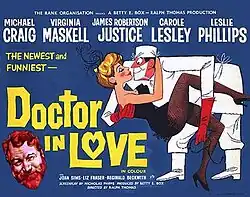 Doctor in Love is a 1960 British comedy film, the fourth of the seven films in the Doctor series, directed by Ralph Thomas and starring James Robertson Justice and Michael Craig.[1] It was the first film in the series not to feature Dirk Bogarde, although he did return for the next film in the series Doctor in Distress. It was loosely based on the 1957 novel of the same title by Richard Gordon.