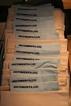 Documenta 13 (stylised as dOCUMENTA (13)) was the thirteenth edition of the German contemporary art exhibition Documenta. It took place between 9 June until 16 September 2012 in Kassel, Germany. The exhibition was held under the theme "collapse and recovery".[1] Exhibits could be seen in several venues in the city, among others in the Fridericianum museum, in the Orangerie and in the Karlsaue, a large urban park.[2][3][4]