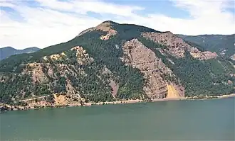 Dog Mountain rises above the north side of the Columbia River Gorge in the U.S. state of Washington. The base of the mountain is in Skamania County along Washington State Route 14, about 9 miles (14 km) east of Stevenson and 53 miles (85 km) east of Vancouver.[3] From its base at 150 feet (46 m),[3] it climbs steeply to an elevation of 2,948 feet (899 m).