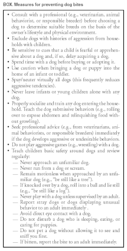 - ^ American Veterinary Medical Association Task Force on Canine Aggression and Human-Canine Interactions. A community approach to dog bite prevention. J Am Vet Med Assoc. 2001; 218: 1732–1749