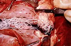 - Heartworm is a dog parasitoid. It is hard to eliminate and can be fatal; prevention, however, is easily achieved using medication. As the name suggests, an infected mosquito injects a larva into the dog's skin, where it migrates to the circulatory system and takes up residence in the pulmonary arteries and heart, growing and reproducing to an alarming degree. The effects on the dog are quite predictable: cardiac failure leading to death. Treatment of an infected dog is difficult, involving an attempt to poison the healthy worm with arsenic compounds without killing the weakened dog, and may not succeed. Prevention is recommended via the use of heartworm prophylactics, which contain a compound that kills the larvae immediately upon infection without harming the dog. Often they are combined with other parasite preventives.