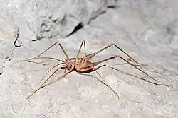 Dolichopoda azami, the Azam's cave-cricket, is a species of cave cricket within the family Rhaphidophoridae.[1][2] The species distribution is in France in the Southern Alps and in Italy in Piedmont, Liguria and Lombardia, where it lives in various dark habitats that have stable temperatures and high humidity. Such habitats include rocky forests, caves, damaged bridges or aqueducts, and abandoned/disused buildings at elevations of 120 to 1,940 metres. It lives in these habitats during the day and is primarily active at night.[3]