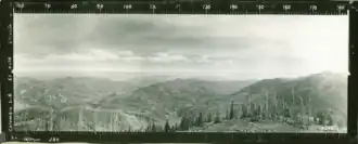 By the time the fire was fully quelled in what the Forest Service estimated was the "late fall" of 1929, the blaze had burned an estimated 98,000 acres (40,000 ha) or 142,000 acres (57,000 ha).[2][6] The fire was the largest fire for the still young Colville National Forest, and also one of the largest fires in the nation over the 1929 fire season.[6] In the years after the fire, efforts were stepped up to assess the fire detection system in the Colville National Forest as a whole, with a full survey being performed and funding allocated to improvement. A number of additional fire lookouts were approved and built along the backbone of the Kettles, which were seasonally or continuously manned until their eventual decommission. Stations inaccessible to wheeled vehicles had the lumber and building material packed in by men and tandem-horse teams in custom made harnesses.[2]