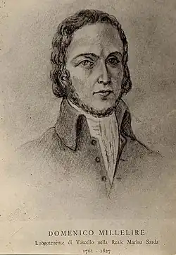 Ship-of-the-line Lieutenant Domenico Millelire (1761 – 1827) was a Royal Sardinian Navy officer who was the first man to be awarded the Gold Medal of Military Valor.[1] Millelire was born in La Maddalena in 1761. He was the son of Pietro Leoni Millelire and Maria Ornano, who also had three other sons. Millelire, alongside his brothers, joined the Royal Sardinian Navy and rose to the rank of quartermaster.