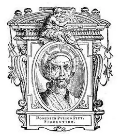 Portrait of Domenico Puligo, illustration from "Le Vite" by Giorgio Vasari. 1568.