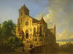 Domenico Quaglio the Younger (1 January 1787 – 9 April 1837) was a German painter, engraver, stage designer, and architect. He was the second son of Giuseppe Quaglio and part of the large Quaglio pedigree of Italian artists involved in architecture, indoor fresco decoration, and scenography for the court theatres. He was known as a landscape and architectural painter/decorator, including quadratura.