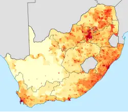 In a study done by the World Health Organization, it was found that 60,000 women and children are victims of domestic violence in South Africa.[7] It is hard to gather accurate statistical data in South Africa because domestic violence is rarely reported. On average, in a cross-sectional study conducted in 2002, the women who were abused came from a lower secondary education and were unemployed.[5] The same study indicated that 9.5 percent of women reported being abused within the past year (working back from 2002); in some areas of the country it rose to 28.4 percent of women who reported being abused. In 2013, 50 percent of the women surveyed reported that they had suffered emotional and verbal abuse. Of the women who were in violent relationships, 45.9 percent of them reported injury. In the same study it was found that typically the women who do witness and feel the violence come from a rural childhood compared to those raised in an urban area.[5] Although there are many places that do offer help to those suffering from domestic violence, those resources are more available in urban areas. In rural areas it is harder to access proper resources. Nearly half of the female murders that happened in 1999 in South Africa resulted from domestic violence.[6]