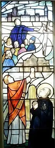 In September, Barberi received a letter from Bishop Wiseman, the head of the English mission, inviting Barberi to start a Passionist foundation in England at Aston Hall. Barberi, with the permission of the Passionist General, visited the site in November 1840, though Ignatius Spencer warned Barberi that the situation in England would mean this would not be a favourable time to make such a foundation. Barberi set out for England once more in October 1841, where he was greeted with stares and suspicion, not only as a Catholic priest, but for the strange garb of the Passionist habit. J. Brodrick SJ, in his work on the "Second Spring" of Catholicism in England, says of Barberi's arrival, "The second spring did not begin when Newman was converted nor when the hierarchy was restored. It began on a bleak October day of 1841, when a little Italian priest in comical attire shuffled down a ship's gangway at Folkestone."[4]
