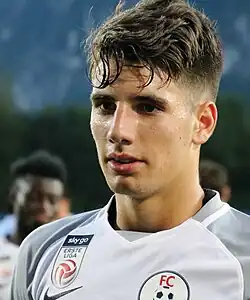 Szoboszlai made his professional debut in the 2017–18 campaign, playing for the FC Liefering in the second division against Kapfenberg on 21 July 2017.[7][8] He scored his first professional goal against FC Blau-Weiß Linz on 4 August 2017.[9]