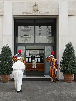 - ^ Wooden, Cindy (26 March 2013). "Pope Francis to live in Vatican guesthouse, not papal apartments". National Catholic Reporter. Catholic News Service. Retrieved 24 January 2014.